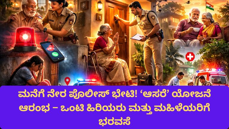 ಮನೆ ಬಾಗಿಲಿಗೆ ‘ಆಸರೆ’! ಕರ್ನಾಟಕ ಪೊಲೀಸರ ಹೊಸ ಯೋಜನೆ ಒಂಟಿ ಹಿರಿಯರು & ಮಹಿಳೆಯರಿಗೆ ಭದ್ರತಾ ಕವಚ ‘ಆಸರೆ’ ಯೋಜನೆ ಎಂದರೇನು? ಒಂಟಿತನ… ಭಯ… ನಿರ್ಲಕ್ಷ್ಯ…ಇವು ಇಂದು …
