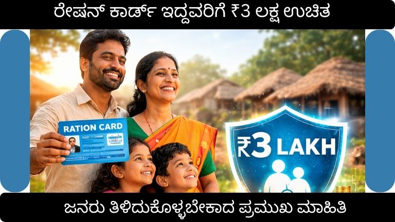 ರೇಷನ್ ಕಾರ್ಡ್ ಇದ್ದವರಿಗೆ ₹3 ಲಕ್ಷ ಉಚಿತ ವಿಮೆ: ಸರ್ಕಾರದ ಹೊಸ ಯೋಜನೆಯ ಸಂಪೂರ್ಣ ಮಾಹಿತಿ ಭಾರತದಲ್ಲಿ ರೇಷನ್ ಕಾರ್ಡ್ ಅನೇಕ ಕುಟುಂಬಗಳಿಗೆ ಅತ್ಯಂತ ಮುಖ್ಯ ದಾಖಲೆಗಳಲ್ಲಿ …